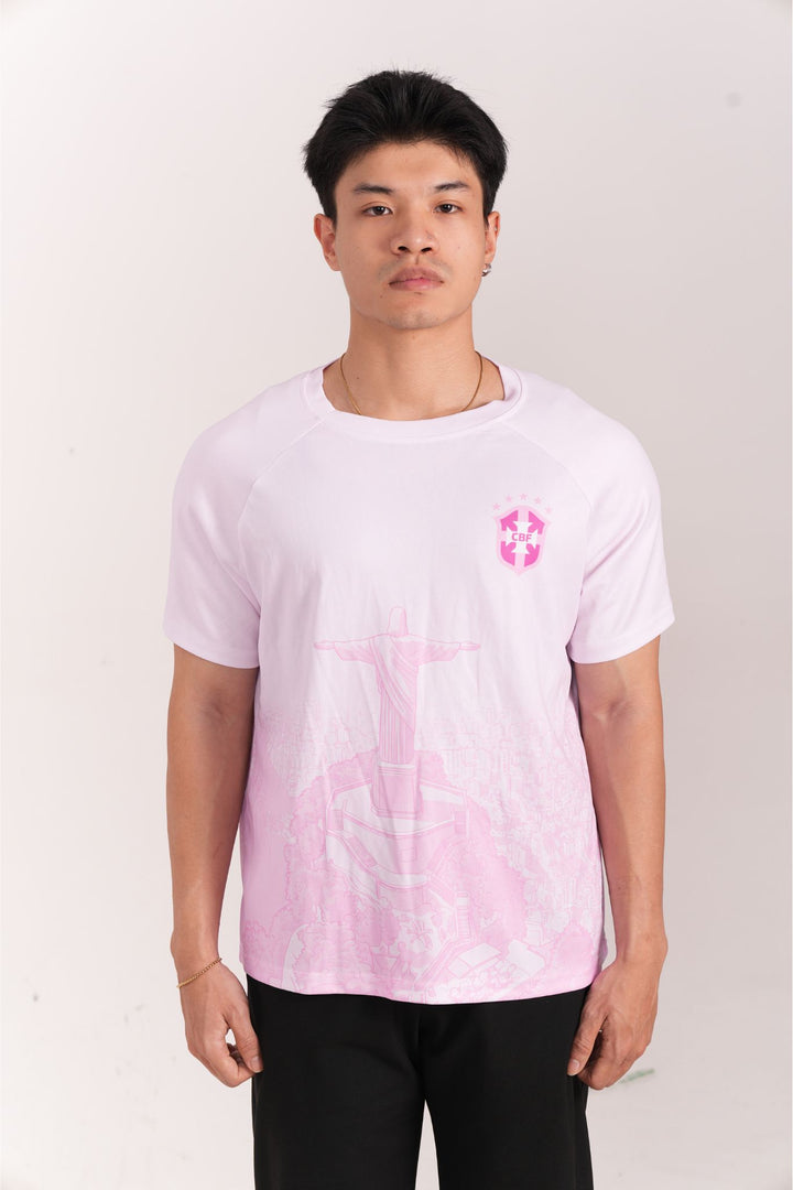 Varldens presents a fresh, modern tribute to Brazil with the 2025 Brazil Special Edition Pink Jersey — a bold reinterpretation of Brazilian pride through a clean, minimalist, and stylish pink aesthetic. Featuring the iconic Cristo Redentor (Christ the Redeemer) monument rendered in soft tonal artwork, this jersey blends national heritage with contemporary fashion, creating a standout piece for soccer lovers, streetwear enthusiasts, and fans of Brazilian culture worldwide.